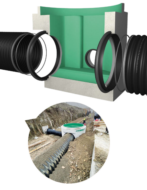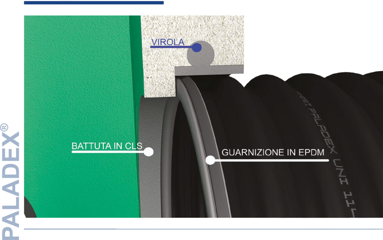 In alcuni casi è necessario collegare le tubazioni PALADEX® con pozzetti prefabbricati in calcestruzzo. La PALADERI, in collaborazione con una primaria azienda del settore, ha sviluppato un sistema di giunzione che garantisce la totale compatibilità tra i sistemi.